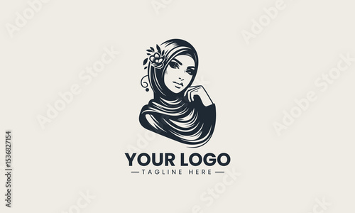 Modern minimalist vector of a woman in hijab, featuring bold geometric shapes in black and white. Abstract concept icon for modest fashion, culture, and Islamic identity.
