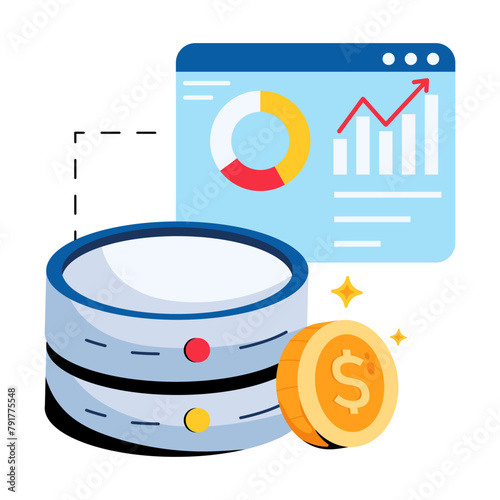 Cloud computing data storage and monetization process showing documents and dollar sign