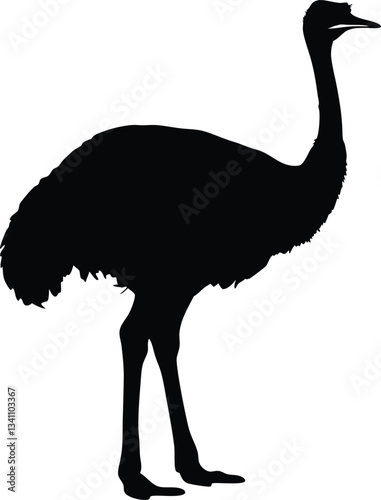ostrich emu bird silhouette, black and white silhouette, vector and illustration