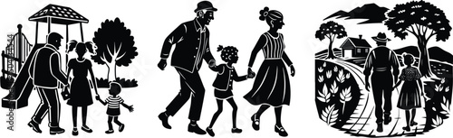 Happy Families Enjoying Outdoor Walks Illustrations of Parents and Children Spending Quality Time Together