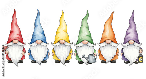 Set of Cute Christmas Gnomes Wearing Striped Hats