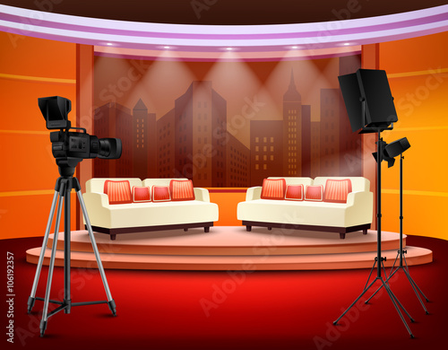 Cute and nice design of Game Show with furniture and interior objects vector design