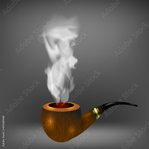 Black Smoking pipe with smoke icon isolated on white background. Tobacco pipe. Vector