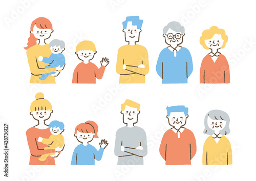 職業別ビジネス向けのシンプルな丸い日本人の顔の人物アイコンイラストセット