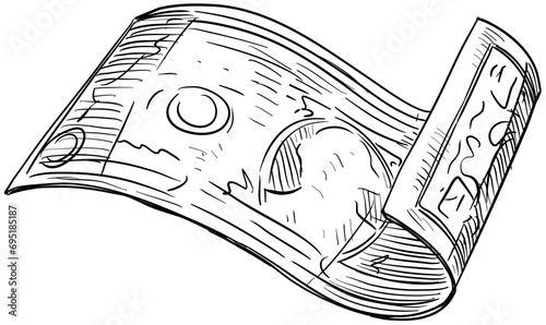 Minimalist black and white line icon of a dollar bill, symbolizing money, finance, and currency. Vector illustration. Editable stroke.