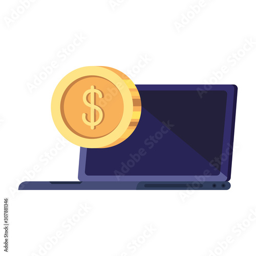 Laptop and man design, Digital technology communication social media internet web and wireless theme Vector illustration