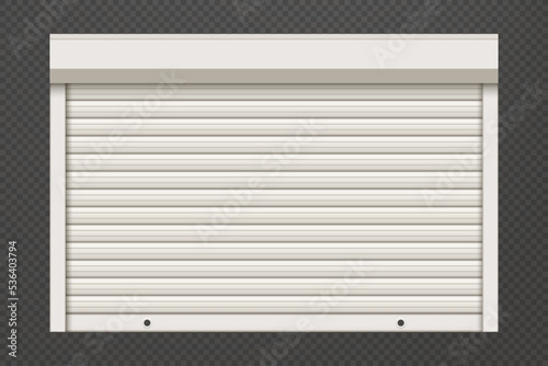 Rolling shutter door. Roller garage metal gate. Electric roll white window background shutter