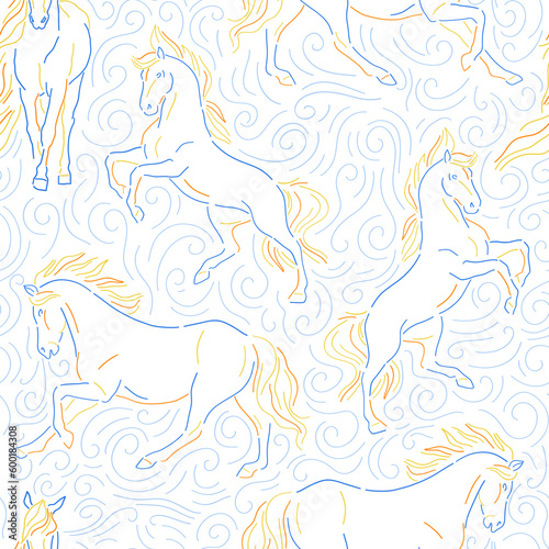 Pattern with linear horse outlines black. Vector illustration for backgrounds, textile, wallpapers and other designs.