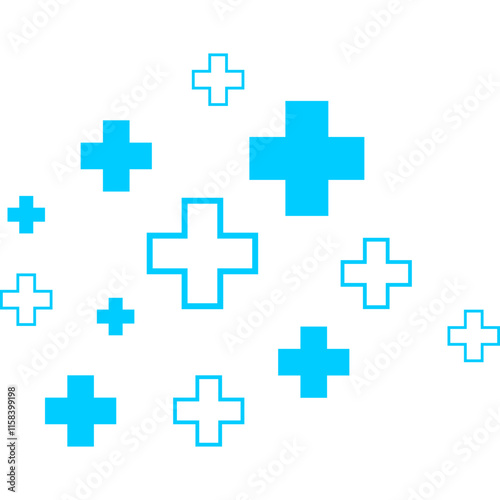 Plus hospital pattern background of seamless cross, health and medicine vector geometric symbols. Medical ornament of plus cross pattern for clinic poster, doctor or pharmacy website blue background