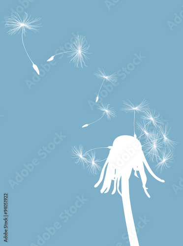 Vector illustration dandelion time. Black Dandelion seeds blowing in the wind. The wind inflates a dandelion isolated on white background.