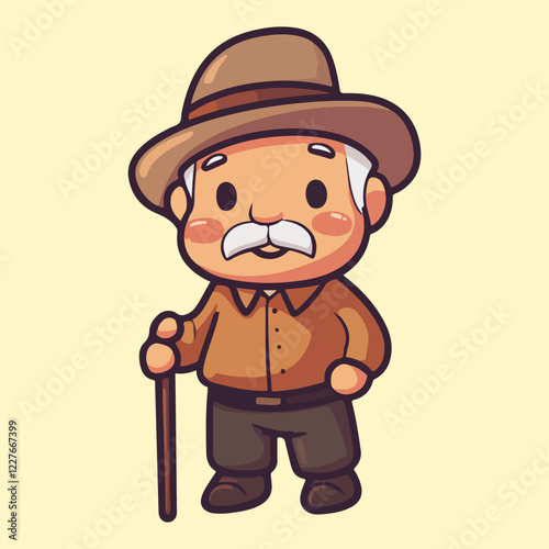 Face old man vector icon, cartoon avatar, people character, diverse senior men. Profile grandfather isolated on white background. Glasses, bald head, mustache and beard. Human illustration
