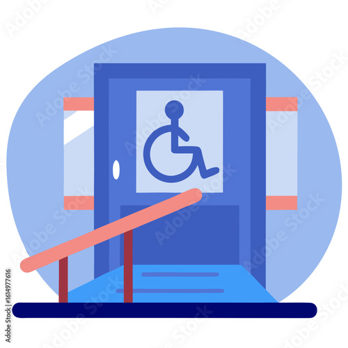 Minimalist Wheelchair Accessible Ramp Building Entrance Vector Design