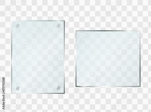 Glass plates are installed. Vector glass banners on a transparent background. Glass. Glass paintings.