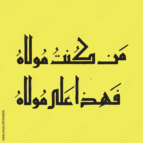 Hadith: Of whomsoever I am a master, this Ali is his master. Eid e Ghadeer Arabic Calligraphy