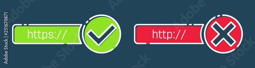 The HTTP and HTTPS protocols. Safe and reliable web browsing. Vector illustrations.