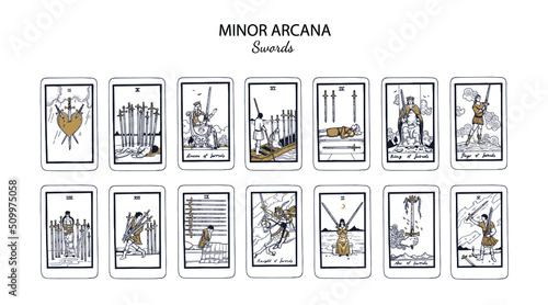 Tarot  Minor Arcana vector set Swords (part1) . Hand drawn illustration