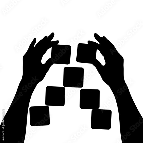 A pair of hands carefully arranging fallen petals and tered debris to maintain the pristine condition of the prayer garden.. Vector illustration