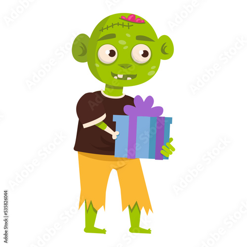 A colorful cartoon of a zombie with an outstretched hands dancing. Flat vector illustration.