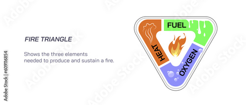 Fire Triangle vector illustration. Image shows the three essential elements needed to produce and sustain a fire. fire triangle ready to print cool illustration for students education and industrials