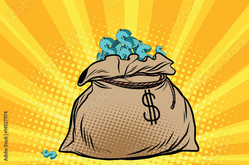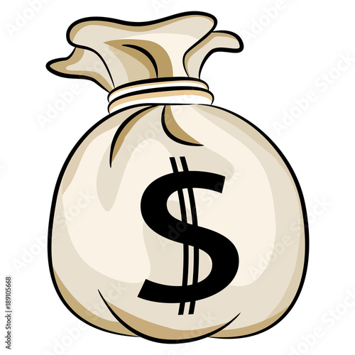 Bag with money. Dollar symbol on the bag. Vector clipart isolated on white background.