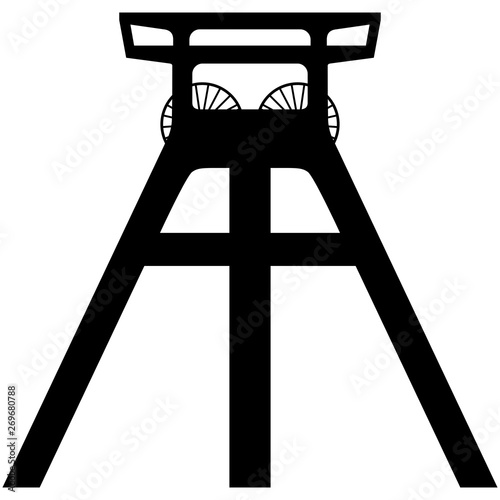 Silhouette coal mine with spoil tip and with rail cars, vector