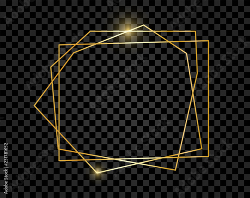 Vintage shining gold geometric frame isolated on transparent background. Decorative luxury line border for invitation, card, sale, photo etc. Vector illustration