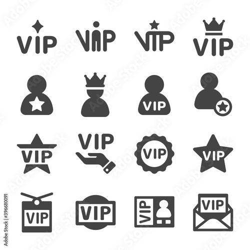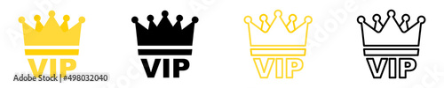 Vip icons set. Vip badge with crown on white background. Symbol of very important person.