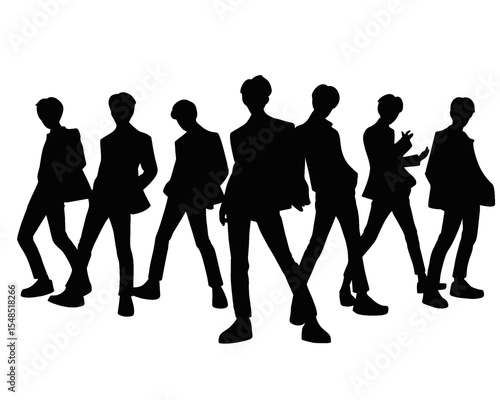 Silhouette of handsome men, male idol group, icon isolated on white background