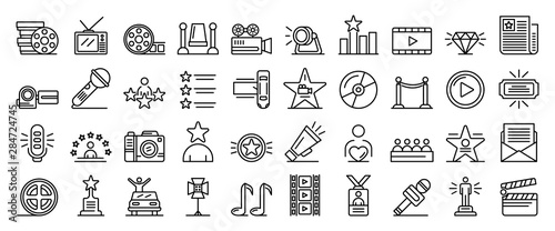 Celebrity icons set. Outline set of celebrity vector icons for web design isolated on white background