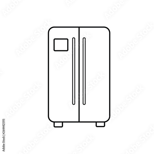 Refrigerator app line icon. Abstract yellow background. Fridge mobile application sign. Remote control symbol. Minimal refrigerator app line icon. Wave banner concept. Vector