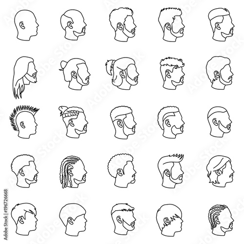 Woman's various hairstyles. Shaggy, bob, bowl cut, pixie, mullet, garcon, buzz cut, mohawk. Vector collection isolated on white background.