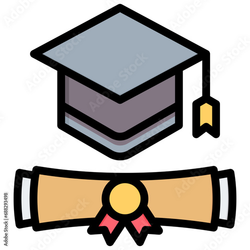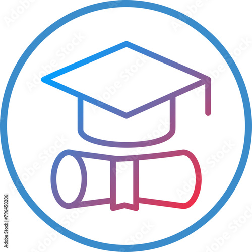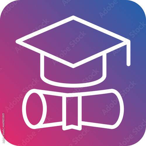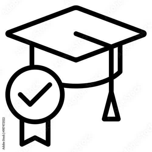 A book and a PhD hat, lineal line icon, black outline, white background, white icon black vector illustration