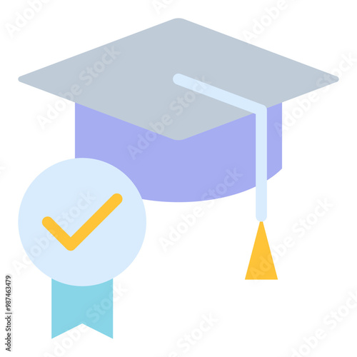Graduate student hat with a golden tassel. Doodle icon. High education and graduation symbol. Vector isolated illustration
