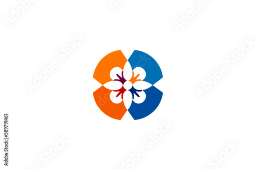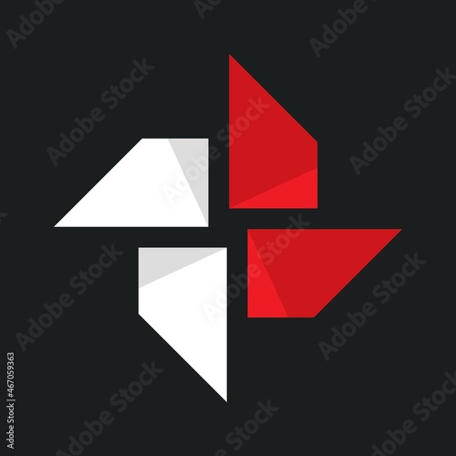 Logo design icon abstract geometric rotating spiral round of half circle creating a flower pinwheel