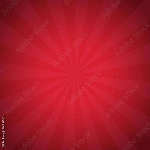 Red background with red sun rays. Abstract summer sun shine. Flat vector illustration