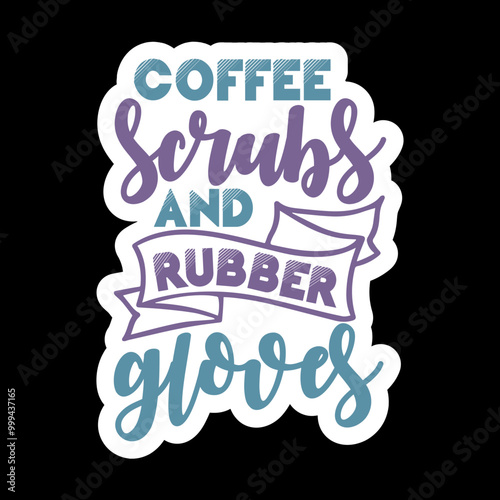 Coffee scrubs and rubber gloves - STOP coronavirus (2019-ncov). Nurse, doctor, practitioner, nurse practitioner t shirt thank you card, speech bubble design. Nursed Day.