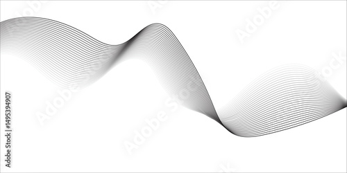 abstract background featuring a smooth, flowing wave made of thin black lines on a white background.The wave should have a three-dimensional appearance with gentle gradients and curves, giving a sense