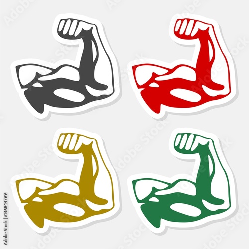 Collection of strong icons depicting various activities like weightlifting, arm wrestling, muscle flexing, and celebrating victory.