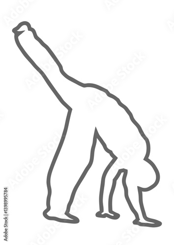 Cartoon capoeira female player practicing acrobatic move. Capoeira dancer in action pose