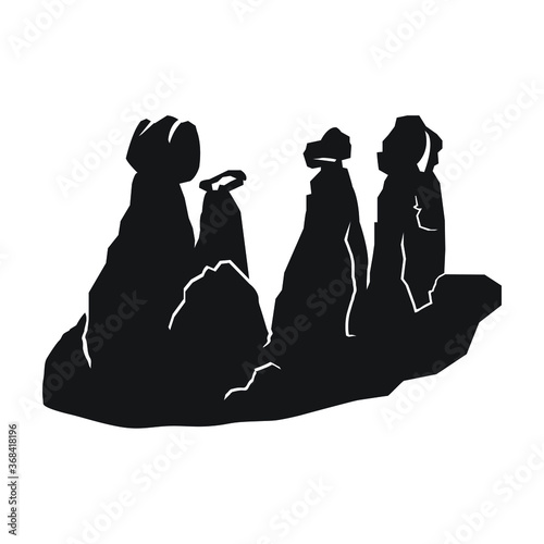 Stone pillars of Cappadocia. Tourist sight of Turkey. Design element for souvenir products. Vector illustration isolated.