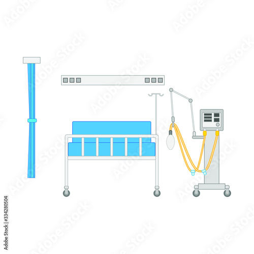 Intensive therapy room with bed, window and medical equipment. Hospital emergency room interior vector.illustration.