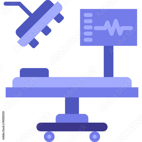 hospital bed and monitor line art intensive care unit equipment minimal vector illustration