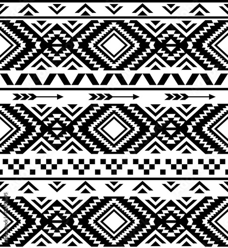 Ethnic pattern design. Seamless pattern. Navajo geometric print. Rustic decorative ornament. Abstract geometric pattern. Native American pattern. Black and white colors