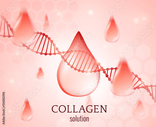 Cosmetics solution.  Supreme collagen oil drop essence with DNA helix. Background Concept Skin Care Cosmetic.
