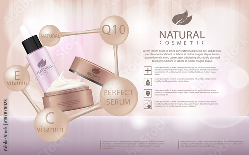 Organic cosmetic and skin care cream. Oxygen bubble of hyaluronic acid for moisturizing collagen design. Beauty skin care design over pink backdrop. Vector illestration.