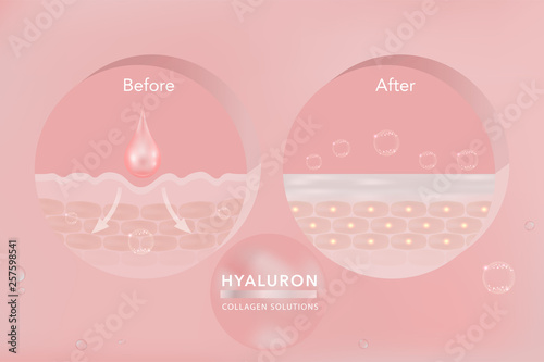 Hyaluronic acid skin solutions ad, white collagen serum drop with cosmetic advertising background ready to use, illustration vector.
