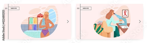 Breast self examination concept vector. Self-inspection of a mammary gland.