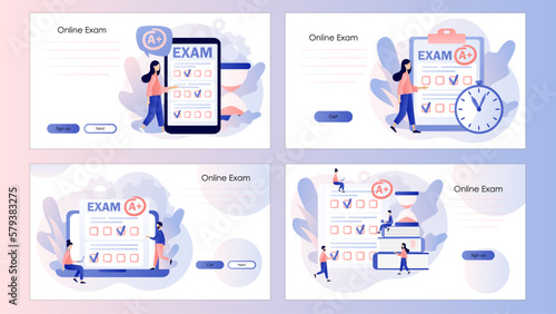 Online exam vector website landing page. Illustration for websites, landing pages, mobile applications, posters and banners.