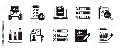 exam grade quiz score result icon set education test evaluation result signs unique style vector illustration for web and app