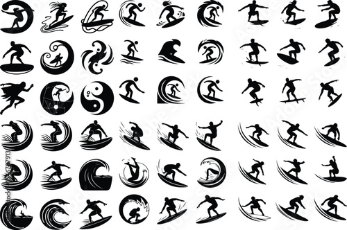 A dynamic collection of skier silhouettes showcasing various poses and actions, isolated on, capturing the essence of winter sports and athleticismski, skier, silhouette, winter, sport, action, pose,